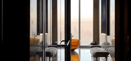 走道端处喷鼻槟色金属雕塑,形类城市高楼,又若情人相互依偎;全采光套房拥揽白日上海黄浦的忙碌、富贵,也珍藏夜晚灯火阑珊的、夸姣。